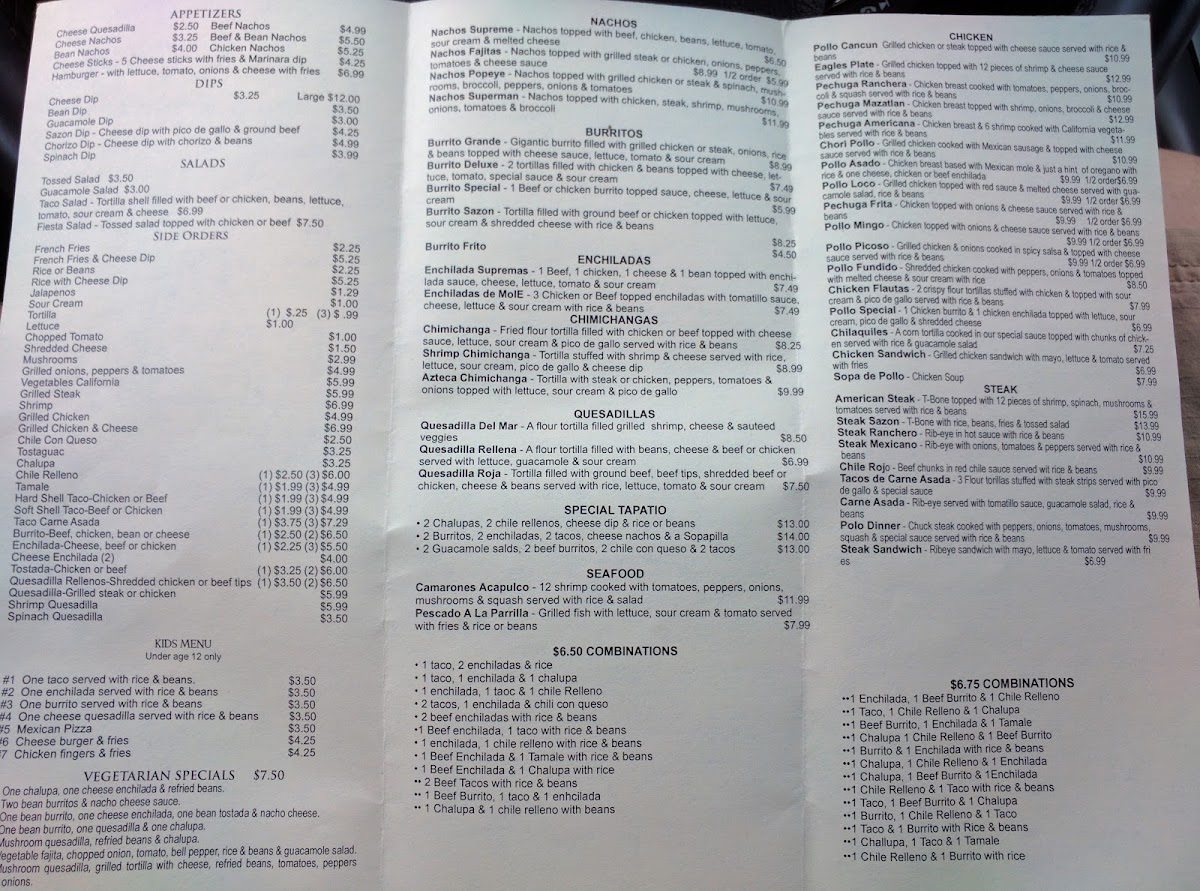Sazon Mexican Restaurant Menu